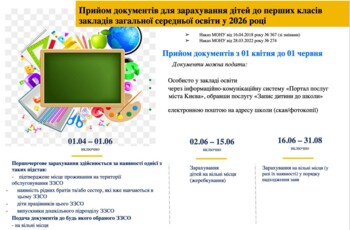 📌Прийом документів до перших класів 2026/2027 навчального року розпочинається 1 квітня
