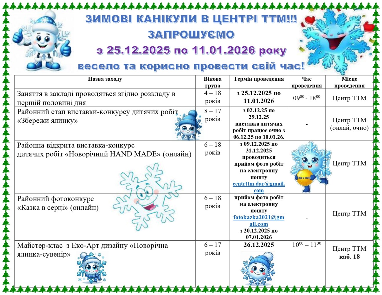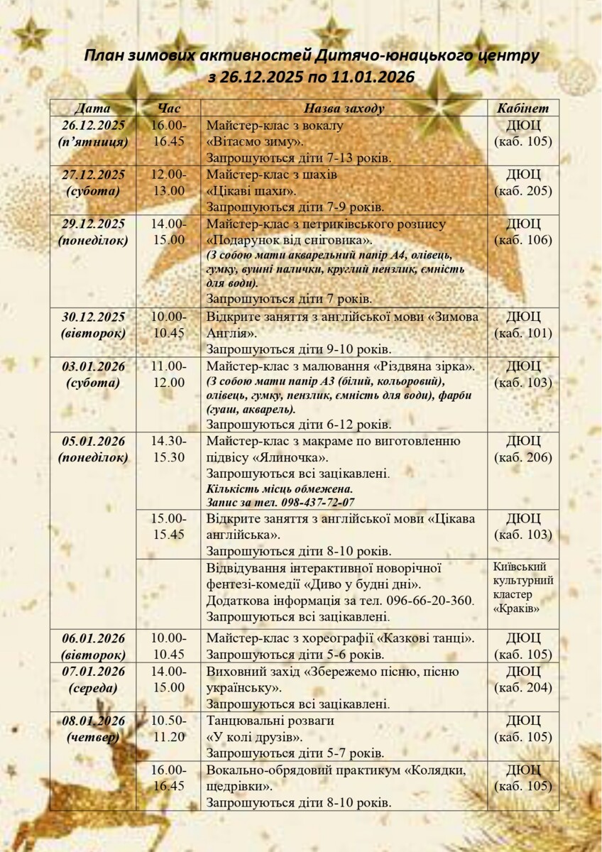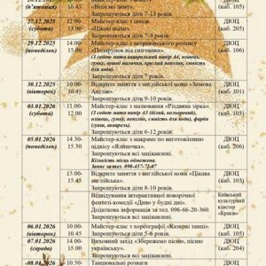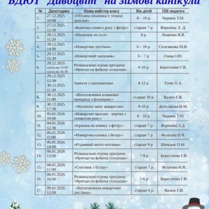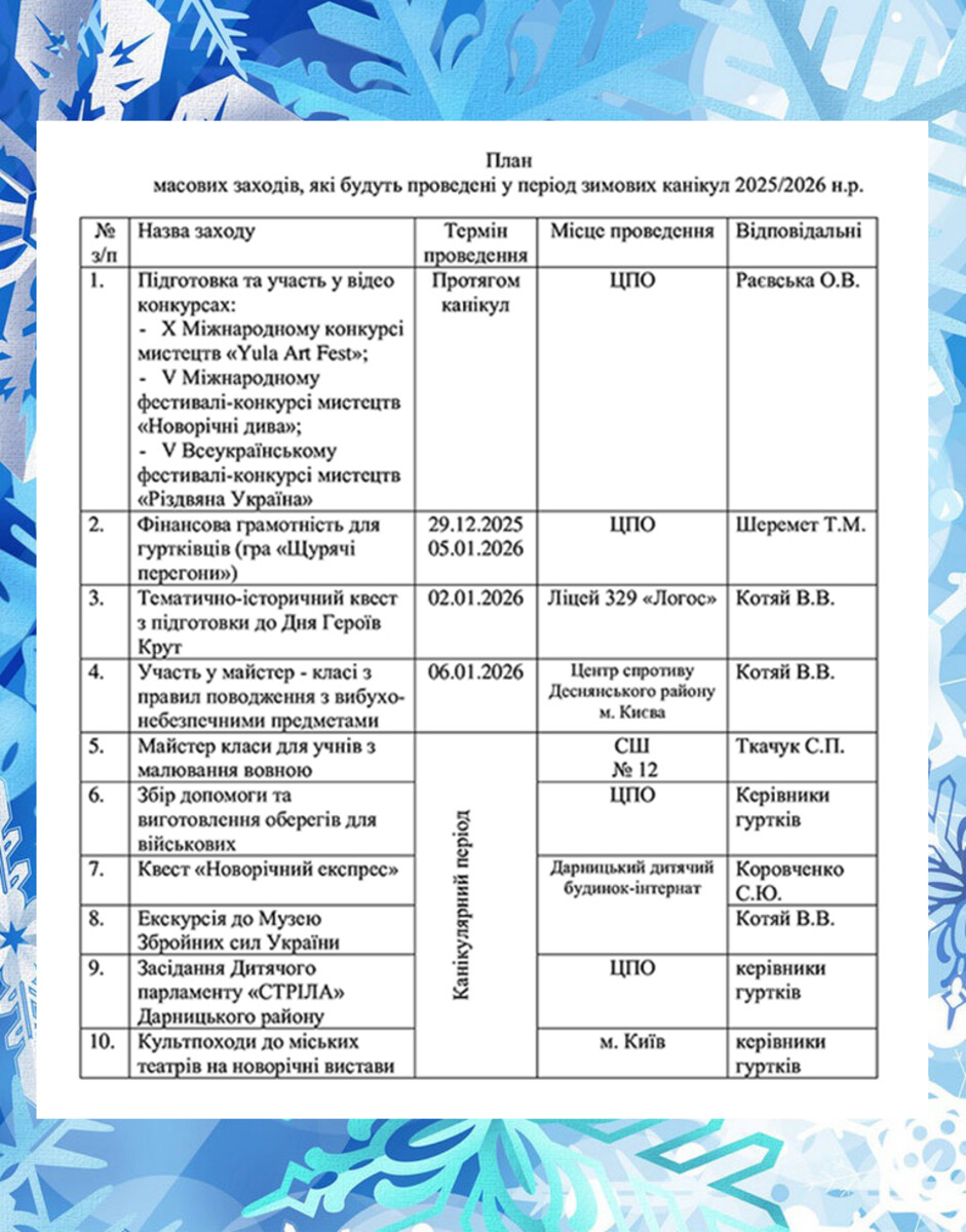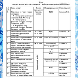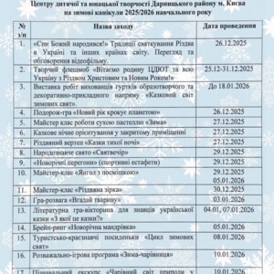 План роботи закладів позашкільної освіти Дарницького району м.Києва на зимові канікули