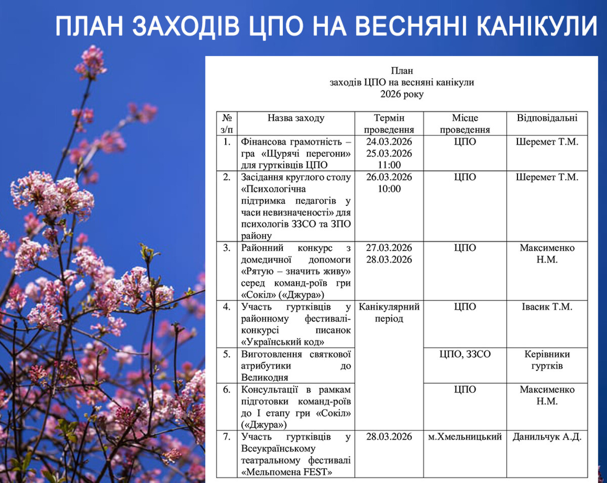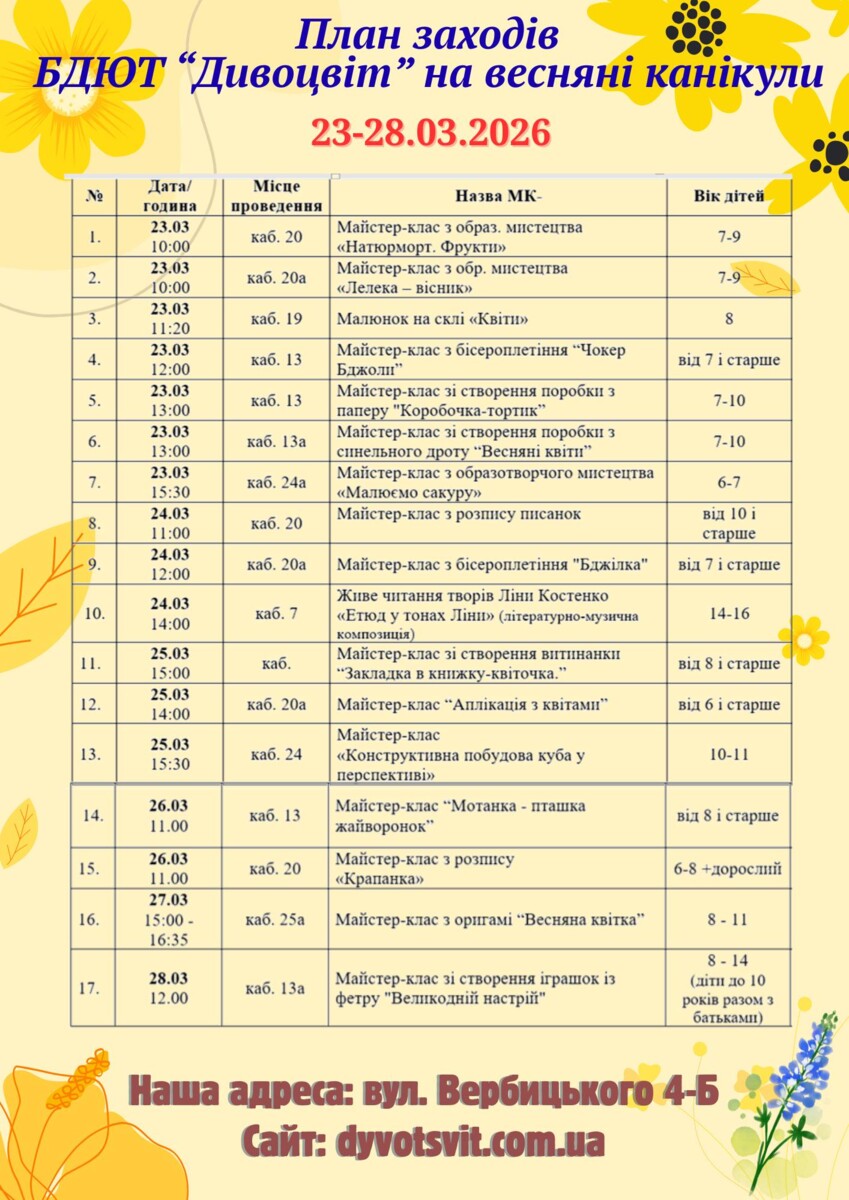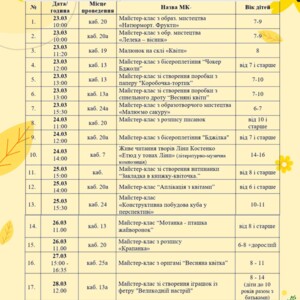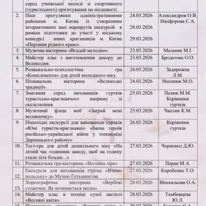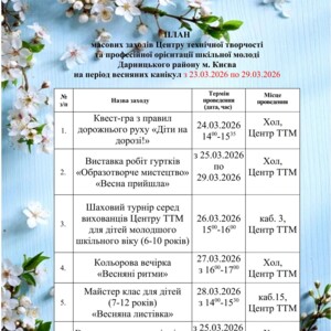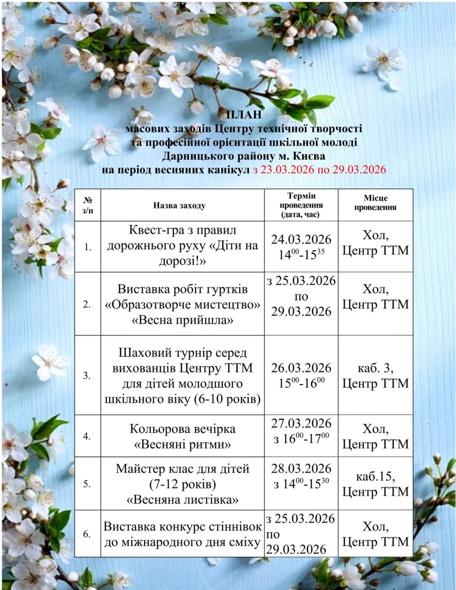 План роботи закладів позашкільної освіти Дарницького району м.Києва на весняні канікули