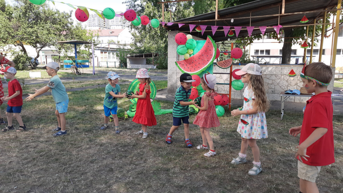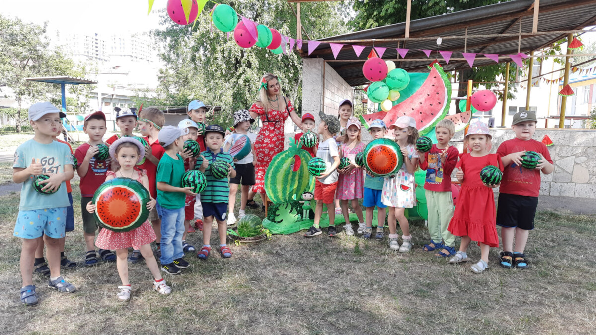 Музичний керівник разом з вихователями провели розвагу на свіжому повітрі «Кавунчик веселунчик» присвячену святу День кавуна, яке відзначають 3 серпня 🍉