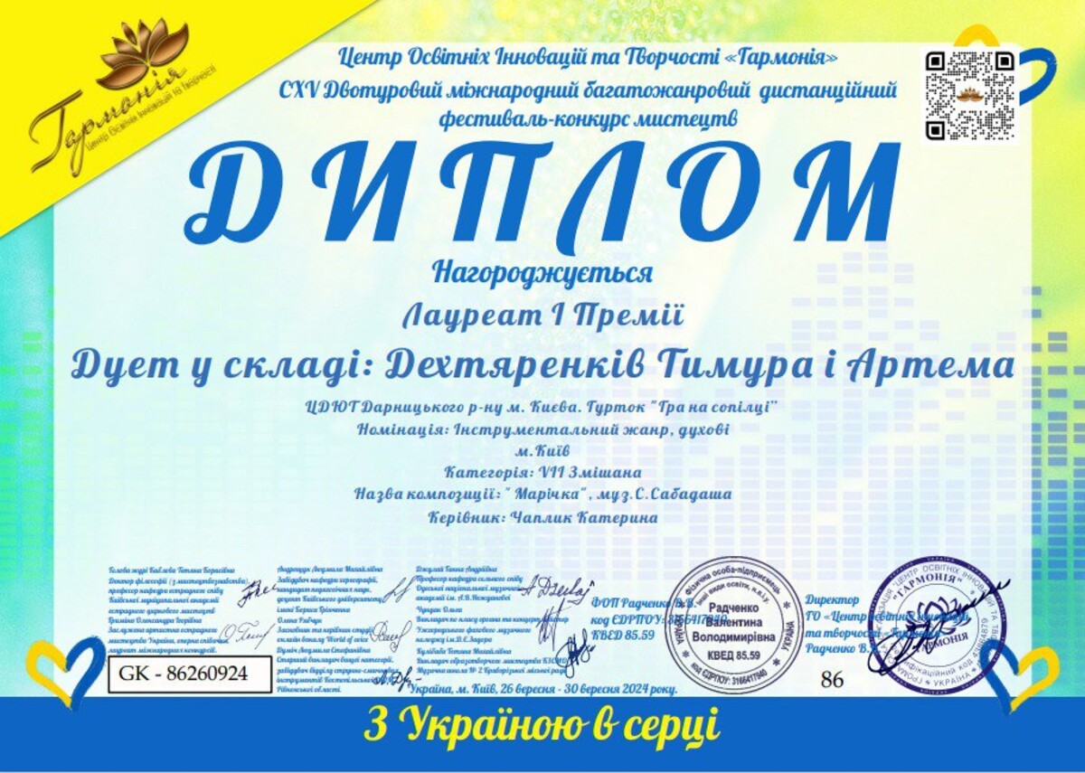 Вітаємо вихованців Центру дитячої та юнацької творчості Дарницького району м. Києва гуртка «Гра на сопілці» (керівник Катерина Чаплик) з успішним виступом на дистанційному конкурсі «З Україною в серці».