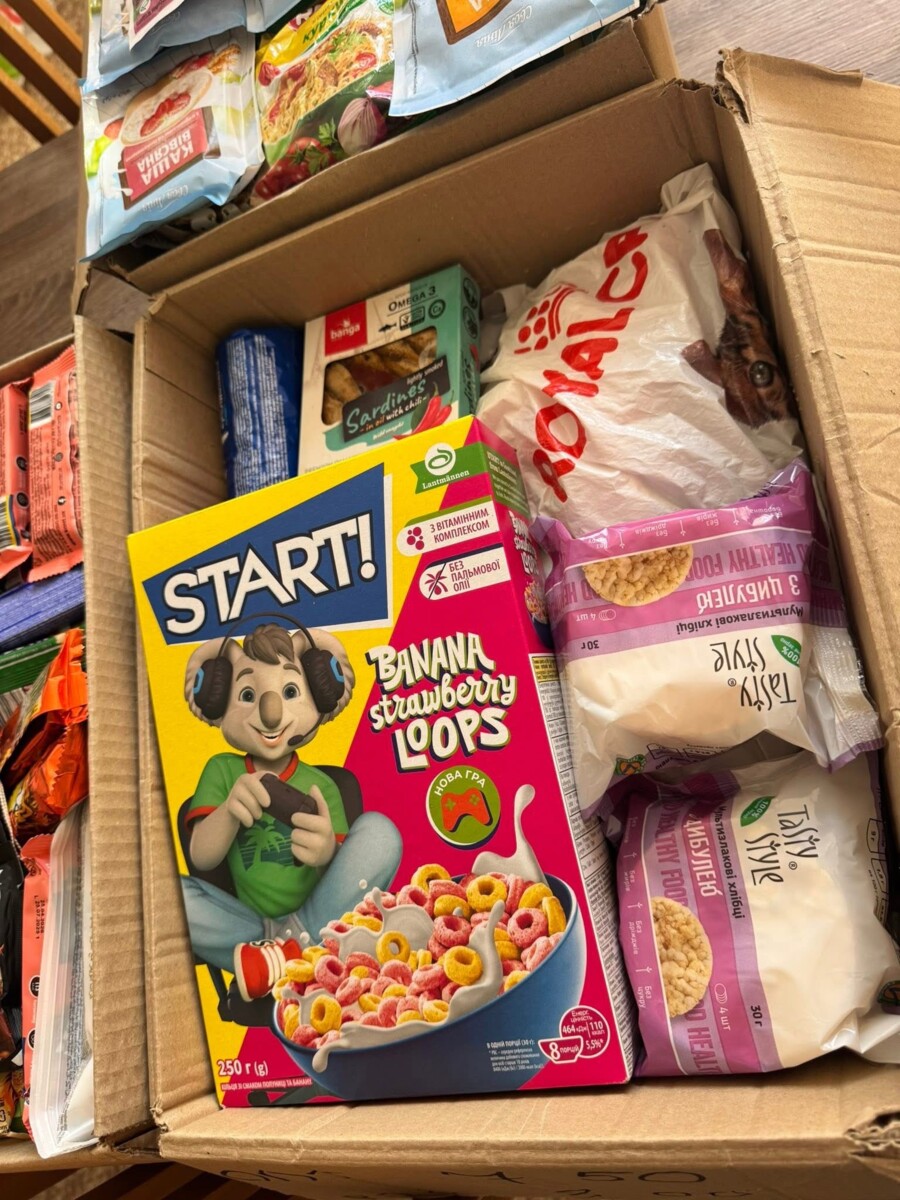 У пакунках — смаколики, горіхи, продукти швидкого приготування та засоби гігієни.