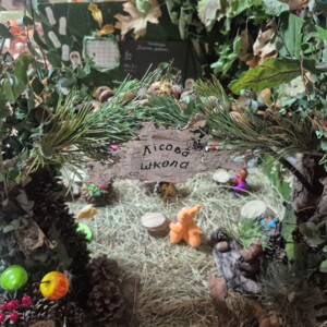 Далі — «Лісова школа» 🦉📚, де звірята вчаться математиці, письму та читанню.