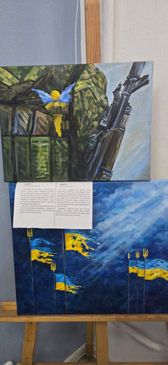Не менш зворушливою була експозиція «Хроніки Перемоги» сучасної мисткині О. Курської, присвячена незламності українців, нашій спільній боротьбі та вірі у Перемогу. Ці картини не залишили байдужим нікого — вони наповнені силою, болем і надією. 💛💙