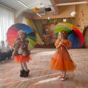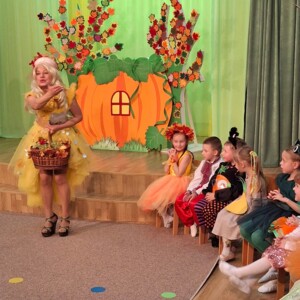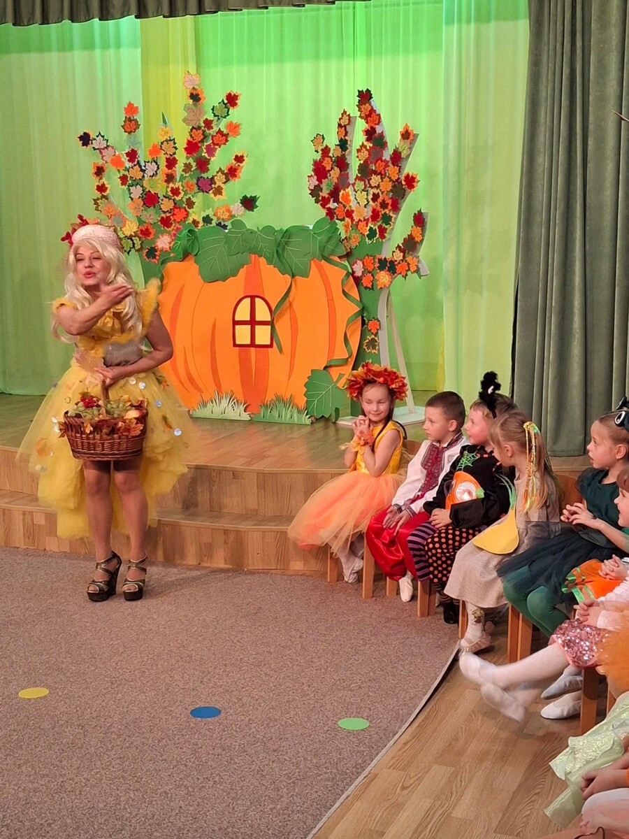 Кожна група подарувала свою неповторну історію, а старші дошкільнята захопили всіх чудовою виставою — драматизацією «Гарбузова хатка» 🎭, де мишеня, жабка, горобчик, колорадський жук і їжачок подружилися та весело жили у гарбузовій хатинці. 🎃💫
