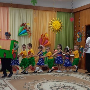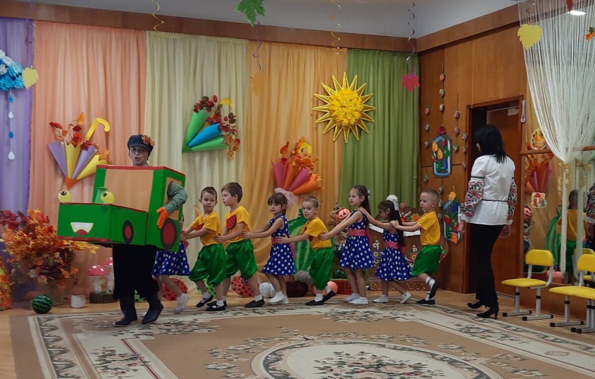 Справжнім сюрпризом для всіх став зелений тракторець, пані Осінь та кумедне Опудало — пан Городу.