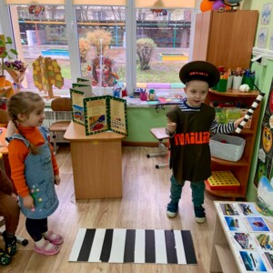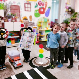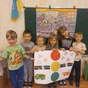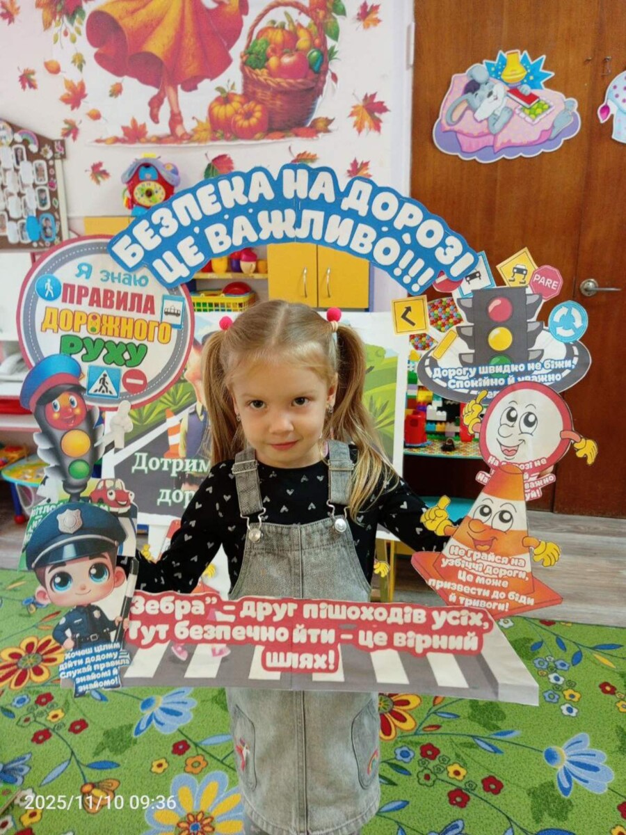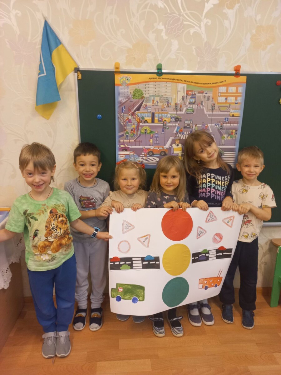 Діти вдосконалювали знання про правила пішохідного переходу, дорожні знаки та кольори світлофора, брали участь у веселих іграх і вікторинах — “Світлофор”, “Пішоходи і водії”, “Дорожні знаки”. 🚸