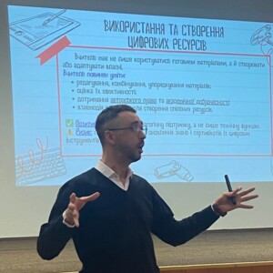 💻 А. Звягінцев, учитель інформатики та фізики, поділився напрацюваннями щодо інформаційно-цифрової компетентності педагогів.