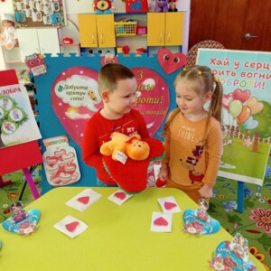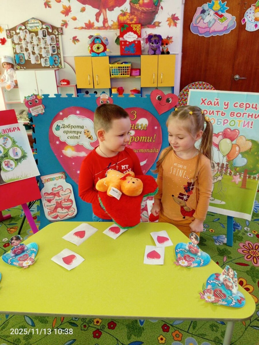 У садочку панувала атмосфера світла й радості. Діти створювали «Серденька доброти», «Долоньки добра», «Сонечко тепла», «Дерево добрих справ», листівки «Добрик», грали у гру «Парасолька дружби», а також годували тварин і птахів — вчилися турботі та чуйності у кожному кроці.