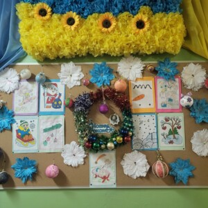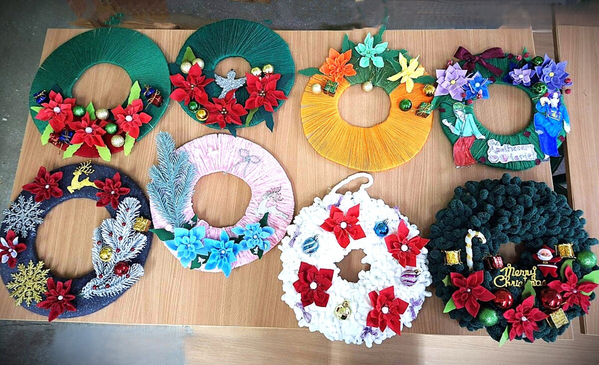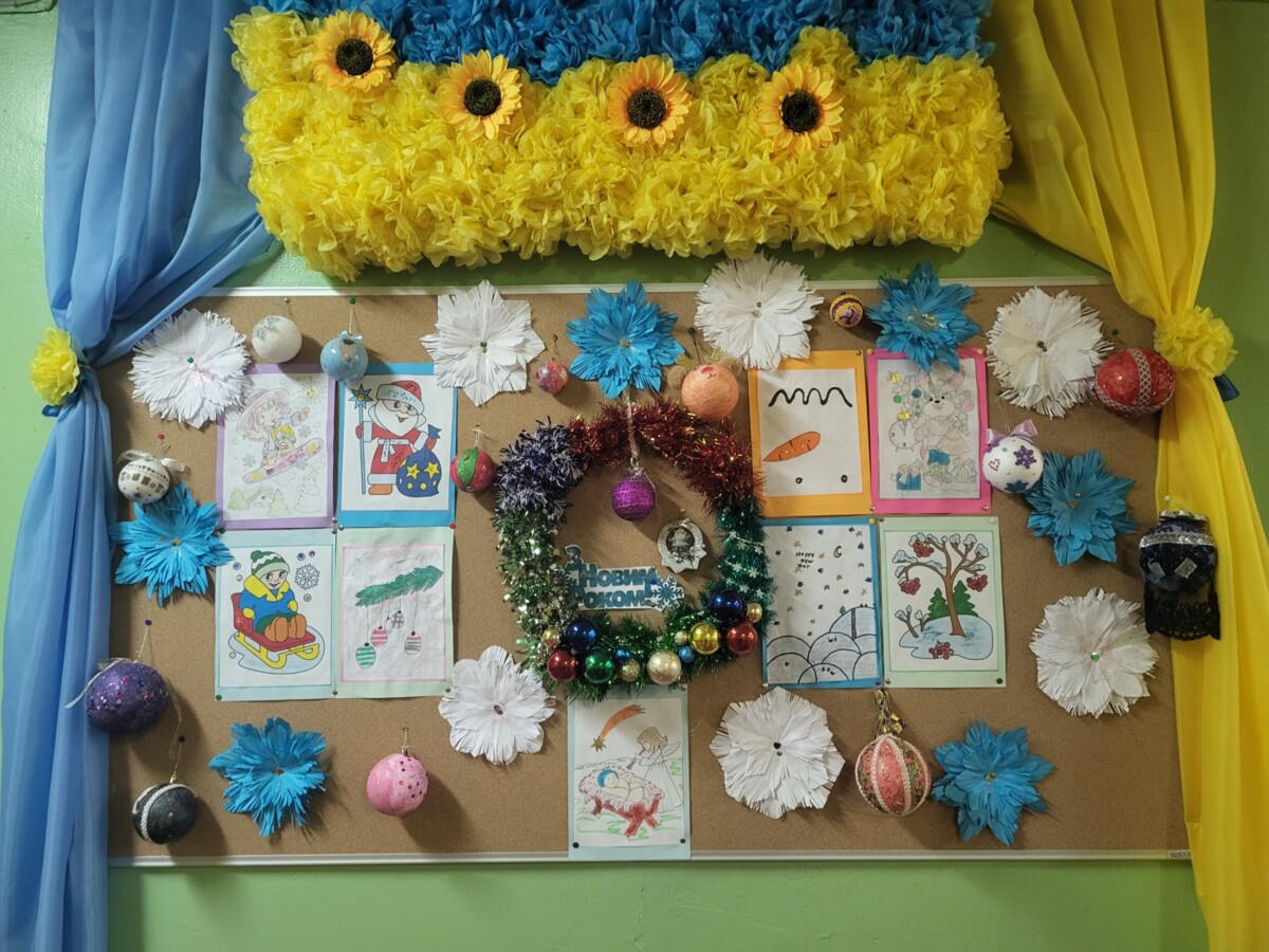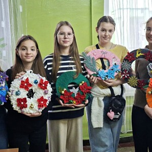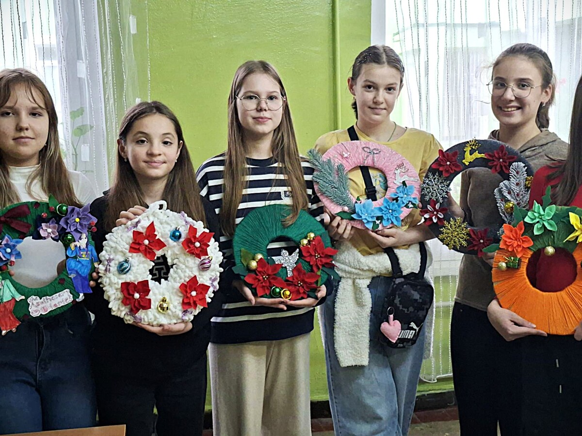 Юні майстрині 6-х класів виготовили чарівні різдвяні віночки, які стали окрасою ліцею та домівок, а учениці 5-х класів прикрасили один зі стендів зимовими композиціями та яскравими малюнками. ❄️🎨