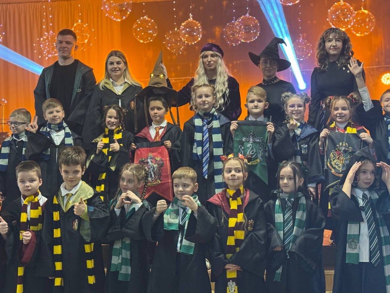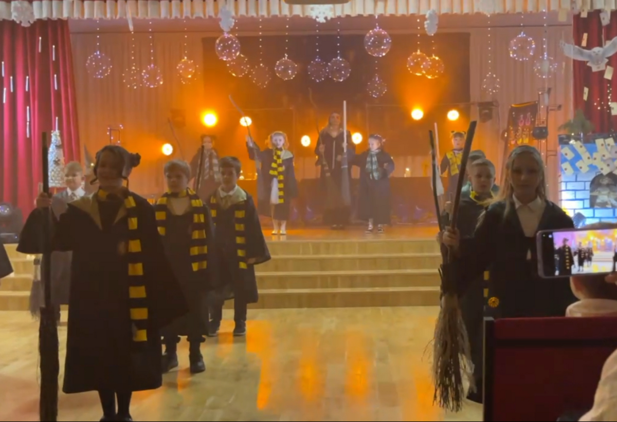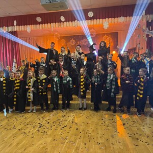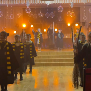 У Початковій школі №333 Дарницького району м.Києва справжнє диво розгорнулося на сцені під час чарівної вистави «Магічна ніч у Гогвортсі», яка перенесла глядачів у фантастичний світ чарівників, пригод і неймовірних відкриттів. Учні школи магів вирушили у захопливу подорож у пошуках шкільного прапора — символу честі, дружби та єдності.