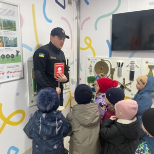 Провідний інспектор відділу №2 Дарницького районного управління Цивільного Захисту та Пожежної Дружини ГУ ДСНС України у м. Києві, лейтенант служби цивільного захисту Віталій Опанасенко провів пізнавальне заняття у мобільному класі безпеки — спеціально обладнаному автобусі, який подорожує Україною та навчає дітей і дорослих безпечної поведінки як у воєнний, так і в мирний час.
