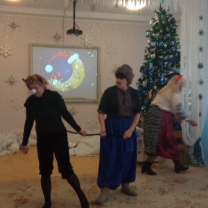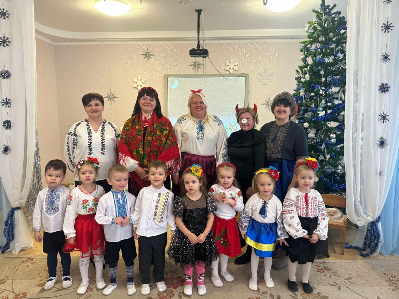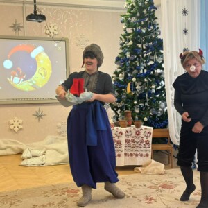 Виховательки підготували святкову виставу за мотивами улюбленого твору «Ніч перед Різдвом». У ролях казкових персонажів — Солохи, Чортика, Оксани та Вакули, вони подарували дітям справжнє диво, наповнене гумором, чарами та різдвяним настроєм.