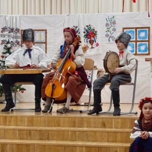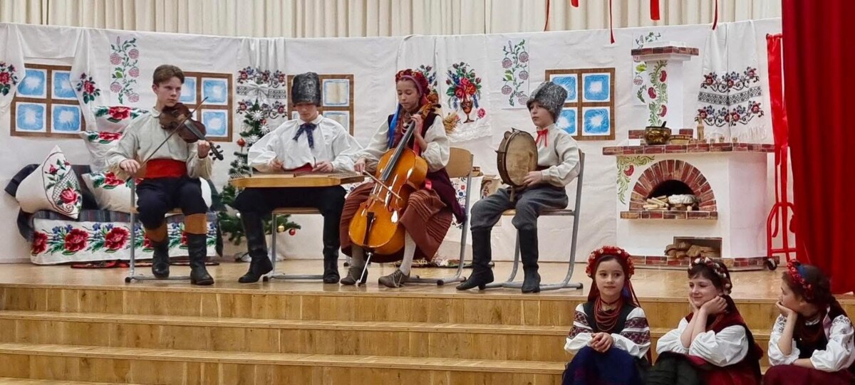 Учні 2-Б класу подарували всім чудове свято «Різдвяна коляда», під час якого лунали автентичні колядки, оживав вертеп, а також відтворювалися давні традиції підготовки до Різдва. Справжньою окрасою дійства став виступ фольклорного гурту «Орелі» під керівництвом пані М. Вертюк (Національний центр народної культури "Музей Івана Гончара"). Діти та гості із захопленням слухали стародавні іменні колядки для дівчаток і хлопчиків, а також разом із батьками танцювали українські старовинні танці «Гречаники».
