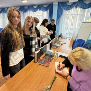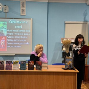 Пані Світлана поділилася власною життєвою історією, розповіла про творчий шлях і презентувала свої книги. Особливий акцент зробила на романі «Розколоте небо», у якому правдиво відображено долі українських селян у часи Голодомору. Саме цей твір старшокласники вивчають у межах позакласного читання.