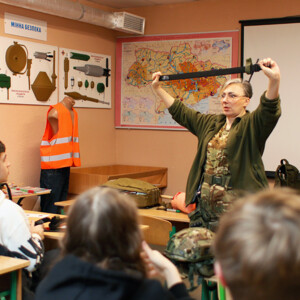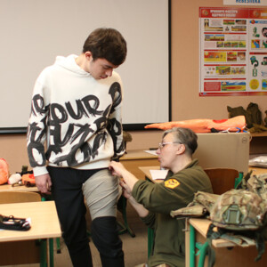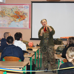 12 грудня до Ліцею "Діалог" Дарницького району м.Києва завітала особлива гостя — бойова медикиня, інструкторка, одна з авторів програми навчання цивільного населення «Нацспротив», ексначальниця групи по роботі з Добровольчим формуванням територіальної громади та цивільним населенням однієї з бригад тероборони — Льоля Пальчикова-Козуб.