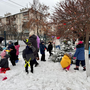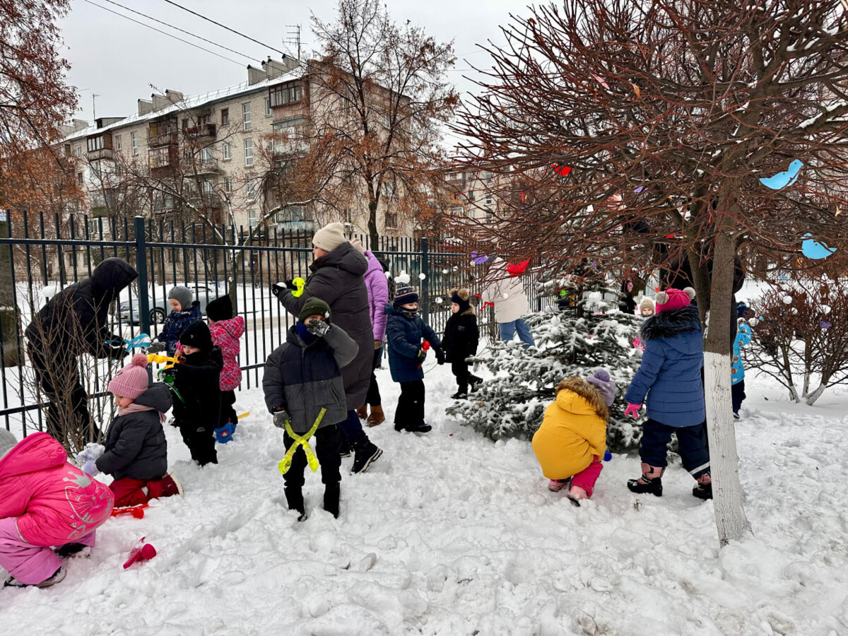 А далі — справжні зимові розваги! ❄️🎨 Малеча ліпила сніжки, прикрашала дерева кольоровими сніговими витворами, і радощам не було кінця. 😄