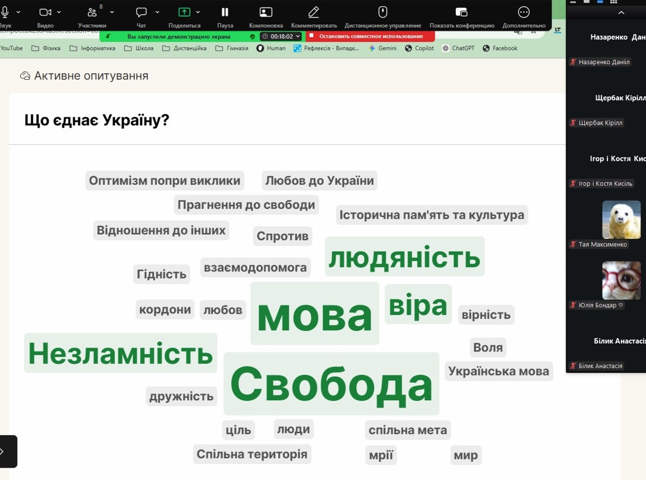 ✨ У Ліцеї № 267 активне онлайн-опитування «Що єднає Україну?» перетворилося на справжній портрет єдності.