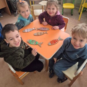 Малята у ЗДО № 809 Дарницького району м. Києва створювали справжні дива — перетворювали прості ниточки на яскраві візерунки та чарівні образи. Діти зробили кумедних котиків, рибок, гусеней.