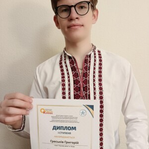 Греськів Григорій, учень 43-Е групи, Ліцею "Наукова зміна" Дарницького району м. Києва, здобув І місце у фіналі! 🥇