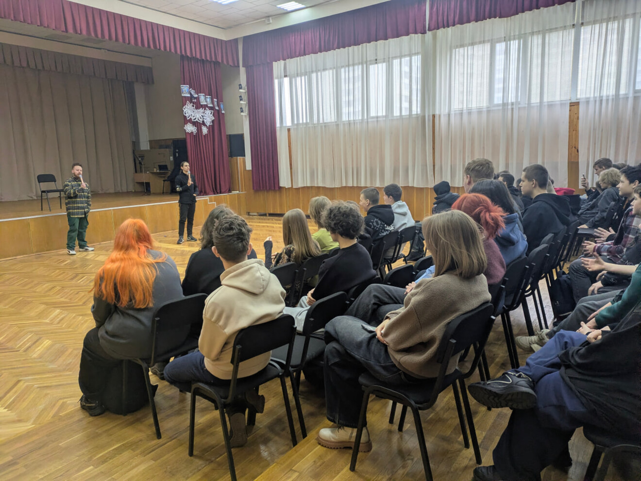 До Гімназії № 62 Дарницького району м. Києва на початку березня завітали стендап-коміки О. Жипецький та А. Стенюк!