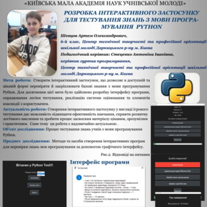 🔹 тест-програма «Розробка інтерактивного застосунку для тестування знань з мови PYTHON» (Шевцов А.).