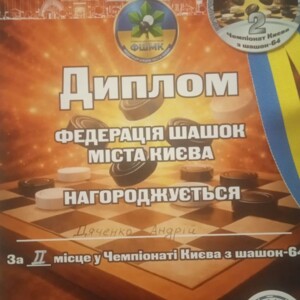 Учень 9-А класу Ліцею № 261 Дарницького району м. Києва Дяченко Андрій виборов 🥈 ІІ місце у Чемпіонаті міста Києва з шашок-64, який відбувся 21 березня 2026 року під егідою Федерації шашок міста Києва.