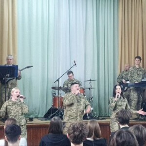 Учні та учениці 9–11 класів вітали патріотично-мистецький проєкт «Від колиски до Звитяги», підготовлений Заслуженим академічним зразково-показовим оркестром Збройних Сил України ВІА «Незламні».