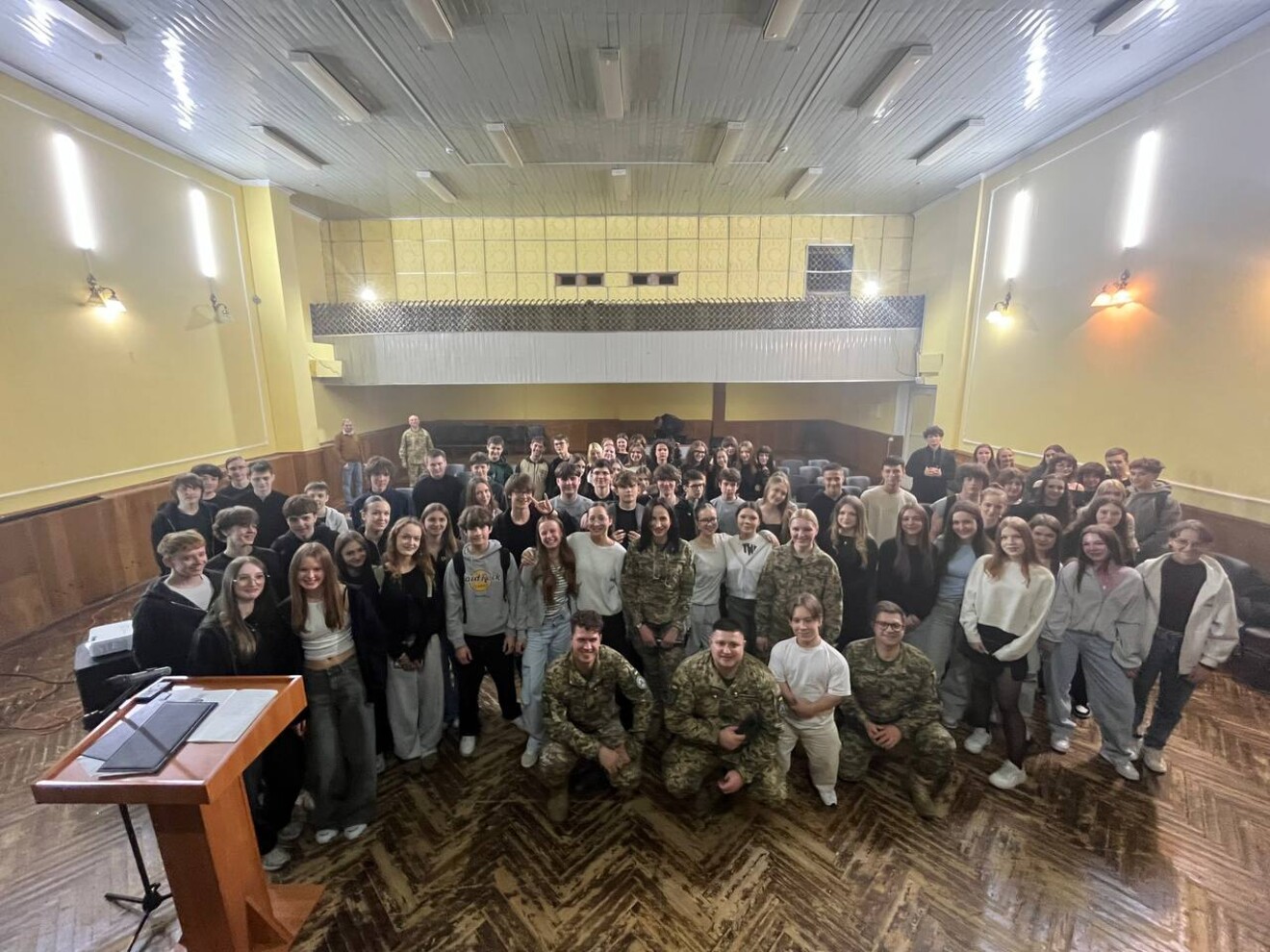Патріотичні пісні «Незламна», «Ой, у лузі червона калина!», «Все буде добре!», «Червона рута», щирі історії про героїв, жива енергетика виступу — все це об’єднало учнів та учениць у спільних емоціях: були і сльози, і посмішки надії, і спільний спів, і пам’ятне фото разом. 💙💛
