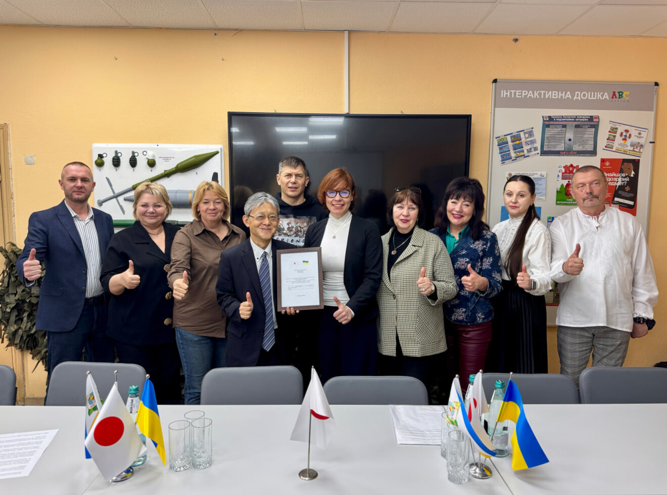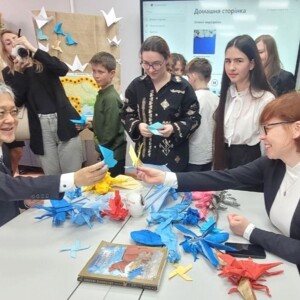 Програма зустрічі включала не лише офіційну частину, а й живе спілкування з учнями. Пан Накаґоме взяв участь у майстер-класі з орігамі, де спільно з учнями створив символічних голубів миру, оглянув шкільну їдальню та обладнання харчоблоку, а також разом із дітьми скуштував страви, приготовані на новому пароконвектоматі.