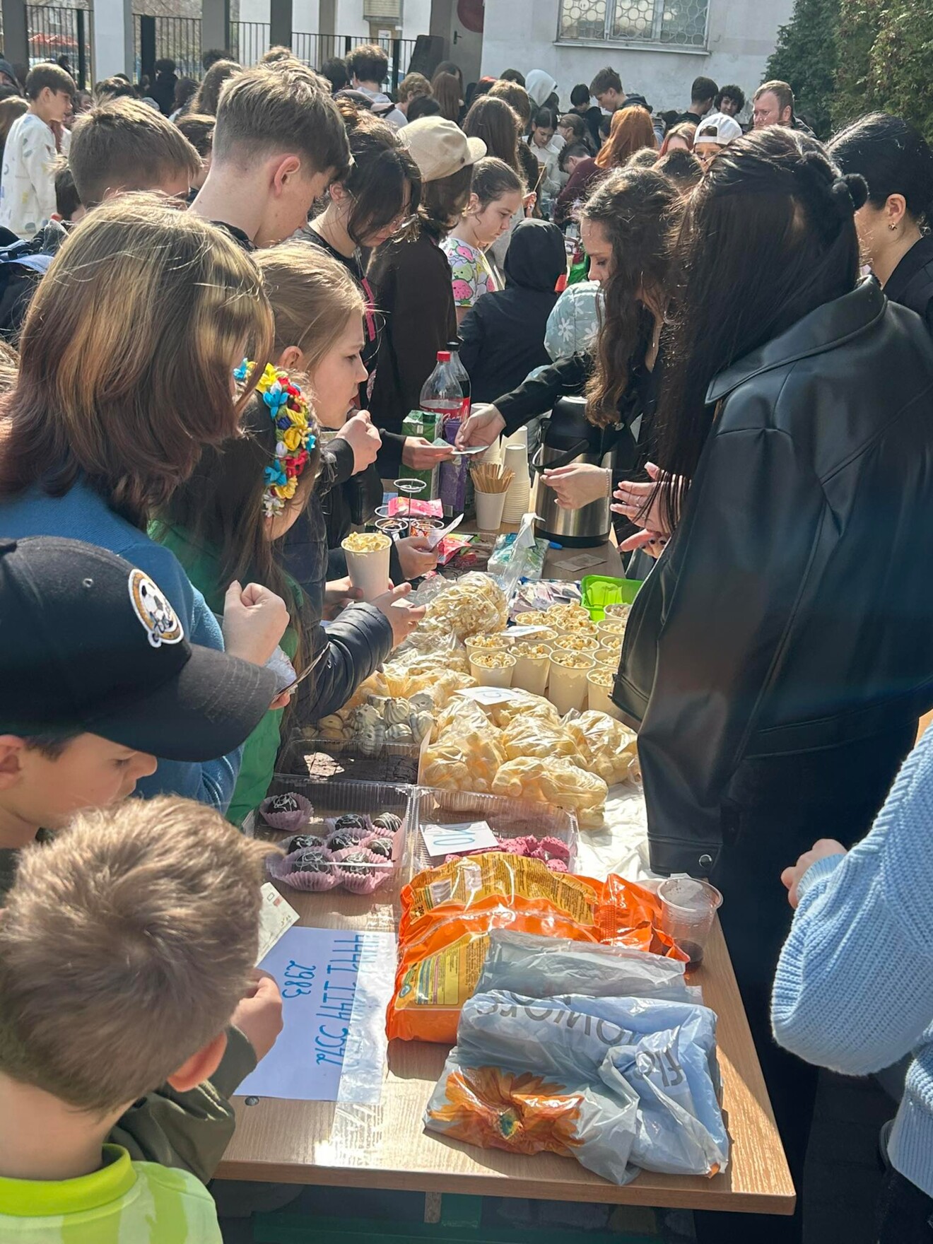 Діти продавали печиво, чай та різні смаколики, допомагали одне одному, рахували кошти, стояли за прилавками й у чергах — відповідально, зосереджено, по-дорослому. У кожній маленькій дії відчувалася велика спільна мета.