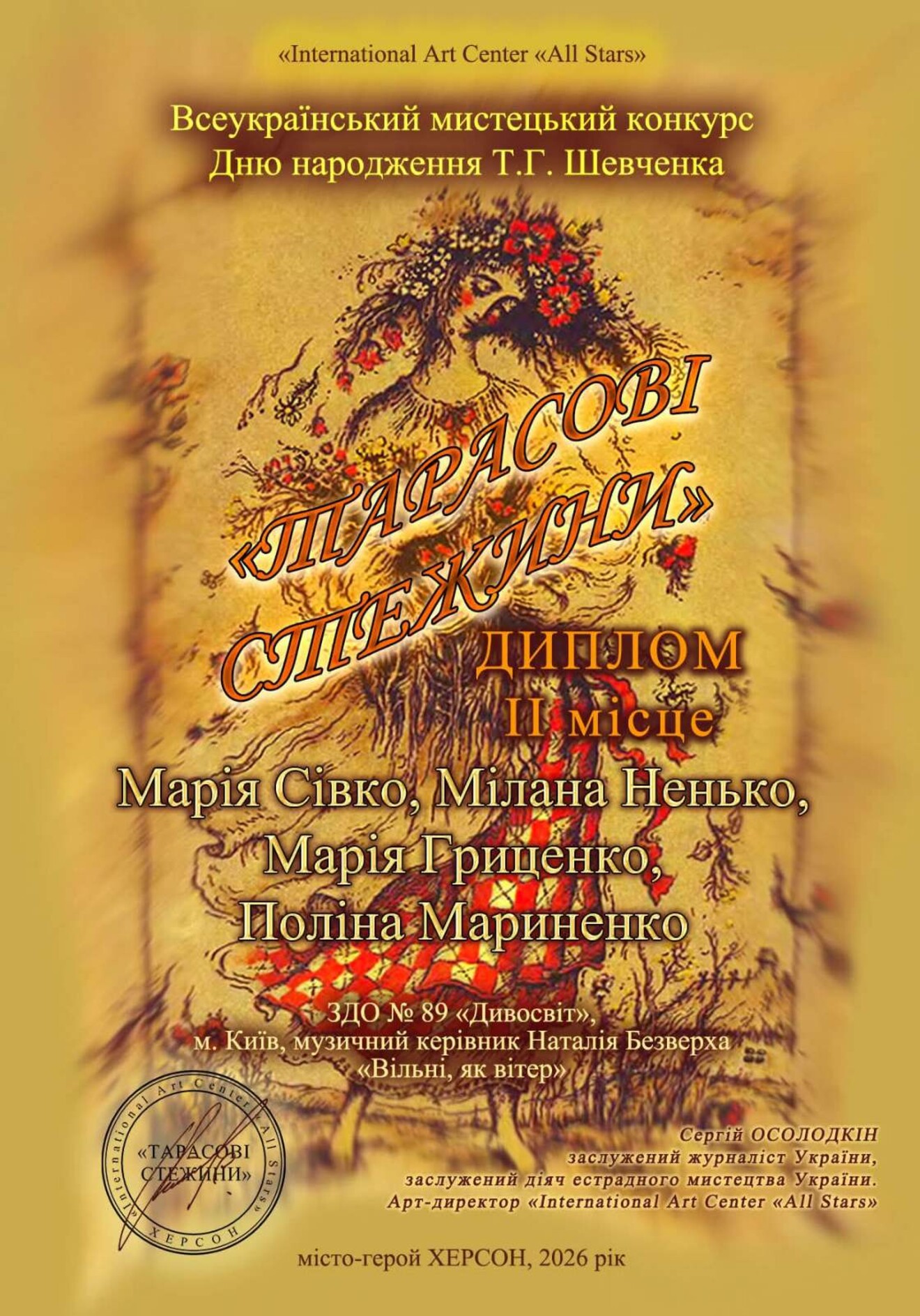 Колектив «Дивосвіт» ЗДО (ясла-садок) № 89 Дарницького району м. Києва долучився до Всеукраїнського мистецького конкурсу «Тарасові стежини» та здобув ІІ місце. 🥈