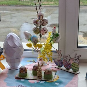 У центрі експозиції — чарівні великодні кролики, 🐰 добрі символи весни та оновлення, створені талановитими руками педагогів і батьків вихованців і вихованок. Садочок майорить яскравими барвами, які дарують радість, піднімають настрій і наповнюють серця очікуванням свята. 🌸